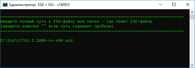Скрипт запросит путь к вашему ESD-файлу. Укажите его, используя проводник, и нажмите Enter.