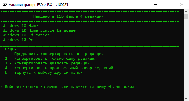Далее вам предложат выбор: преобразовать все редакции Windows, содержащиеся в ESD-файле, или выбрать только определенные. Если вы не уверены, выбирайте пункт, который преобразует все.
